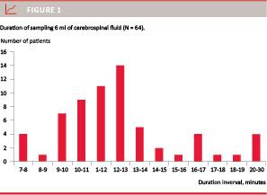 A total of 64 patients had the sampling of 6 ml CSF with a 27-G-needle measured by an observer during the procedure (Figure 1).
