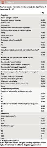 Some major differences were that three of 11 departments reported that they also have medical students employed to perform LP. One department specified that a special team of students performed this procedure full-time (Table 1).