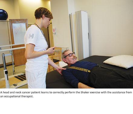 Dysphagia caused by HNC needs to be treated based on different principles than those commonly used in neurology, but the knowledge and expertise is missing among the attending therapists, especially in municipality RCs. Since studies suggest that sequelae are more easily prevented than treated, extra efforts should be made to ensure that patients are informed of their rights and opportunities, and that they are supported intensively by therapists before, during and after treatment.