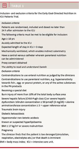 Conclusion: The optimal nutrition strategy for ICU patients remains unsettled. The EAT-ICU trial will provide important data on the effects of early goal-directed protein-energy nutrition based on measured requirements in these patients.