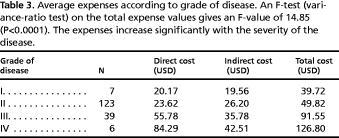 The family cost increases significantly with the grade of disease and thereby with the intensity of treatment, since all fluids and medications are paid for by the family.