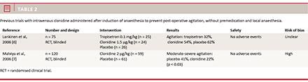 Pickard A, Davies P, Birnie K et al. Systematic review and meta-analysis of the effect of intraoperative alpha2-adrenergic agonists on postoperative behaviour in children. Br J Anaesth 2014 Jun;112:982-90.