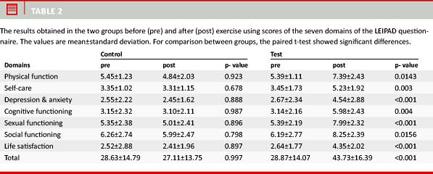 Results: The results showed significant improvements in all domains of the LEIPAD questionnaire whilst the level of HQL did not change and none of the scores obtained by the LEIPAD was significant. Measures of HQL improved with exercise so that there were no HQL changes in the control but significant changes were observed in the exercise group.