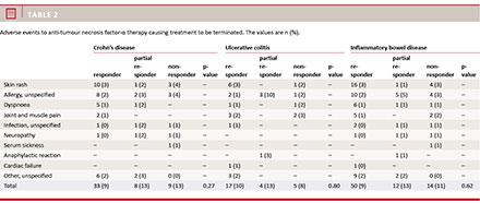 Five partial responders with UC and 5 patients with CD and 23 patients with UC, who were non-responders, were colectomised within 22 weeks of treatment initiation. Four patients with UC who initially responded to anti-TNF therapy lost the effect and were colectomised within 22 weeks of treatment initiation.