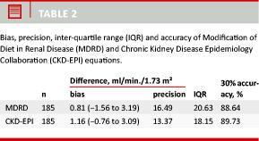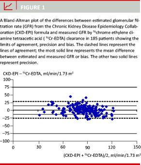 Accuracy was defined as the percentage of patients who had an estimated kidney function within 30% limits of the mGFR (51Cr-EDTA).