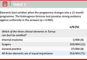 The doctors who followed the 18-month programme found that none of the three clinical elements were unimportant (Table 2). However, all physicians found that internal medicine should be mandatory despite the fact that the 12-month programme does not provide the same rotation contents for all physicians – which means that several physicians’ rotation programme did not comprise internal medicine.
