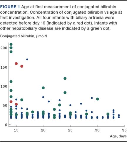 Harpavat S, Garcia-Prats JA, Anaya C et al. Diagnostic yield of newborn screening for biliary atresia using direct or conjugated bilirubin measurements. JAMA. 2020;323(12):1141-1150.