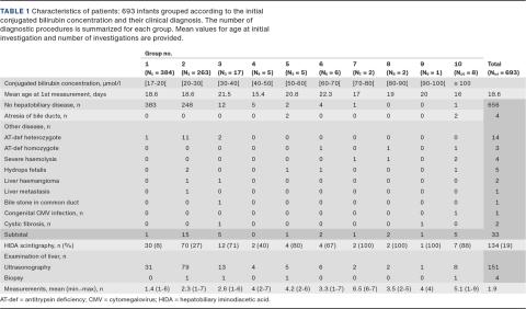 Methods. A total of 693 infants were identified in the Central Biochemical Database (Labka). From a review of all medical records, CB measurements, results from diagnostic procedures and the final diagnosis were documented.