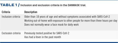 Inclusion criteria are adults (above 18 years of age) who are not recommended wearing face masks at work according to Danish authorities, working out-of-home with exposure to other people for more than three hours per day and who have not previously been infected with COVID-19 (Table 1).