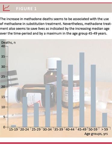 treatment [1]. The increase in methadone deaths is undoubtedly connected to the high number of clients in methadone treatment. This is supported by the fact that among the deceased addicts reported to be in methadone treatment, 92% died from a methadone overdose in 2012. On the other hand, the increase in median age indicates that treatment programmes also save lives. Substitution treatment of drug addicts has been found to be less restrictive in Copenhagen than in Odense and Aarhus [15]. Many drug addicts were not supervised while taking methadone in Copenhagen [15]. This could be the reason for the high number of methadone deaths in this area.