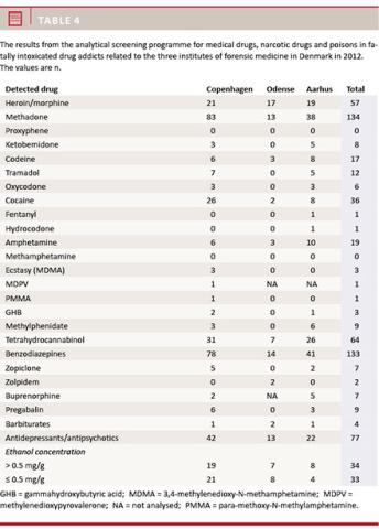 Methods: All fatal poisonings examined at the three institutes of forensic medicine in Denmark in 2012 were included in the study.