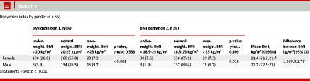 BMI was measured via the students’ self-reported height and weight.