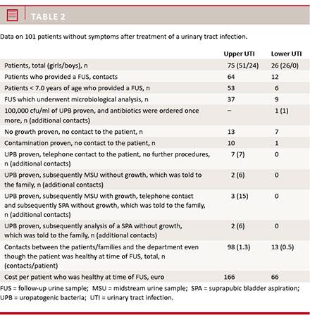 Methods: Consecutive patients below 16.0 years treated for upper or lower UTI from 1 January 2009 to 31 December 2009 at Hvidovre Hospital in accordance with the guidelines of the department and the DPS. All patients were asked to provide a FUS within 21 days.