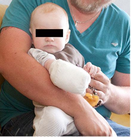 A four-month-old boy who is under treatment for upper urinary tract infection. A follow-up urine sample is not indicated, but if he has symptoms after treatment he must be examined. The parents have accepted that the picture is presented. Photo: Susanne Østergaard, Hvidovre Hospital.