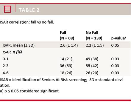 Methods: A descriptive cohort study was conducted including patients aged 65 years or older admitted to the ED, n = 198. The following data were collected: ISAR screen, cause of admittance. Furthermore, a retrospective journal review was performed by a specialist in geriatrics.