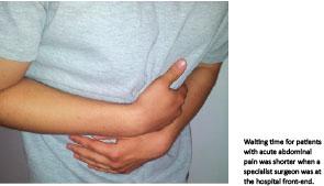 The aim of our study was to compare time from arrival to patient information about a treatment plan for patients with acute abdominal pain at an ED with and without an SAU, respectively. Secondary outcome measures were waiting time to be seen by a doctor, to be seen by a surgeon, analgesics, blood tests and time spent with health professionals.