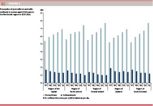 Material and methods: Regional drug use data on pivmecillinam and sulfamethizole from 2007 to 2011 were retrieved from the Registry of Medicinal Product Statistics. Regional recommendations from the same period were identified. We calculated differences in consumption based on defined daily doses per 1,000 inhabitants per day (DID) of pivmecillinam and sulfamethizole between the five regions, and intraregional developments.