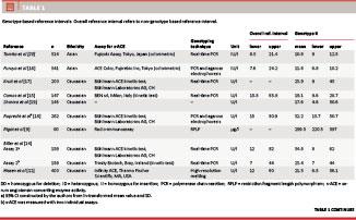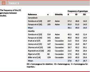Since the I/D polymorphism impacts the normal level of s-ACE, we aimed to summarise current evidence for genotype-based differences in mean values of s-ACE in different ethnic populations.