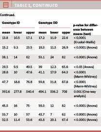 The I/D polymorphism is responsible for almost half of the biological variation in s-ACE among healthy individuals [10], s-ACE being highest in individuals carrying the genotype DD and lowest in genotype II.