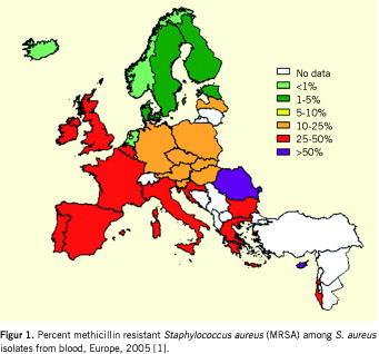 Methicillin-resistant Staphylococcus aureus (MRSA) which are often multi-resistant as well, have been almost absent in the Nordic countries for 30 years, while being prevalent in the rest of Europe ( Figure 1 [1]). During the last 3-4 years, however, MRSA have increased epidemically in Scandinavia now occurring at the same prevalence in the community as in hospitals.