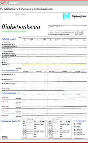This was an observational study on the management of hyperglycaemia in non-critically ill diabetic patients based on review of diabetes treatment schemes. The setting was two non-intensive departments, the Department of Nephrology (a medical department) with 40 beds and the Department of Vascular Surgery (a surgery department) with 26 beds, at Copenhagen University Hospital (Rigshospitalet), as these departments were expected to treat a considerable number of diabetic patients.