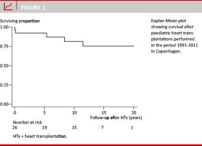 Heart transplantation (HTx) is an established treatment option for paediatric patients with end-stage heart failure [1]. The dominant diagnosis in adult HTx-patients is cardiomyopathy (CM), whereas congenital heart disease (CHD) constitutes a second major group in paediatric HTx populations. The brain-death criterion was introduced in Denmark in 1990. The first adult HTx was performed at Copenhagen University Hospital, Rigshospitalet (RH), the very same year, whereas the first paediatric HTx was performed one year later. Since then, another 25 paediatric HTx procedures have been performed at RH. We describe our first 20 years with paediatric HTx at RH.