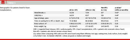 Material and methods: This was a retrospective study of 37 paediatric patients (< 18 years) who were listed for HTx from 1991 to 2011.