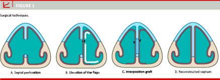 A multitude of autologous and heterologous connective tissue interposition grafts have been used in combination with the techniques described above. Again, no single graft has proven superior for the closure of all perforations [1, 2, 5, 6, 10]. We believe, as other authors, that autologous grafts are preferable [5, 10] and that cartilage should be preferred over fascia as it provides greater support for the regenerating mucosa [9]. Reconstructing the original septal architecture and physiology as a triple-layered structure seems reasonable and is advocated by several authors [3, 4, 6, 8, 15].