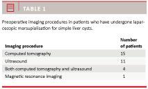 The aim of this study was to evaluate our department’s experience with laparoscopic marsupialisation of simple liver cysts.