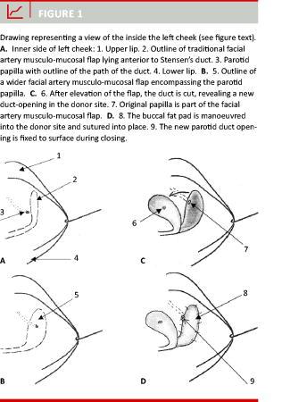 The fact that the width of the flap is restricted by Stensen’s duct is stated in the majority of the literature as a disadvantage. However, in four cases we saw that this can be overcome by relocating the opening of the duct whereby the versatility of the flap is augmented. This increases the potential range of uses for this technique.