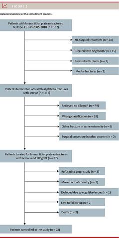 The authors have previously reported on lateral tibial condyle fractures treated with percutaneous screw fixation without the use of grafting [6], also in the period from 2005-2010, and shown results that are comparable to those of the present study group. However, the results are both retrospective and no conclusions regarding the effect of grafting can be drawn from these