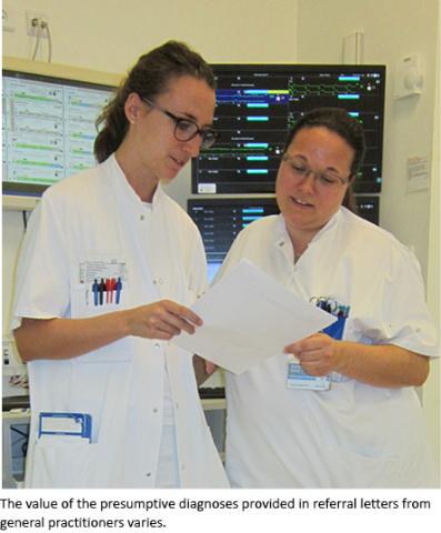 Patients referred with a presumptive diagnosis tend to undergo examinations aiming to verify or disprove this diagnosis, which involves a risk of overlooking other crucial presumptive diagnoses. When a patient is referred with a symptom, the patient undergoes a series of examinations tailored to the given symptom(s). This can, however, result in a comprehensive range of examinations that may potentially increase cost and delay treatment, and this approach does not take into account the GP’s previous assessment, which may contain important considerations.