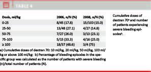 Bleeding episodes also occurred in patients who received only a low dose of dextran. However, larger cumulative doses of dextran (ml/kg) were associated with an increasing rate of bleeding, see Table 4.