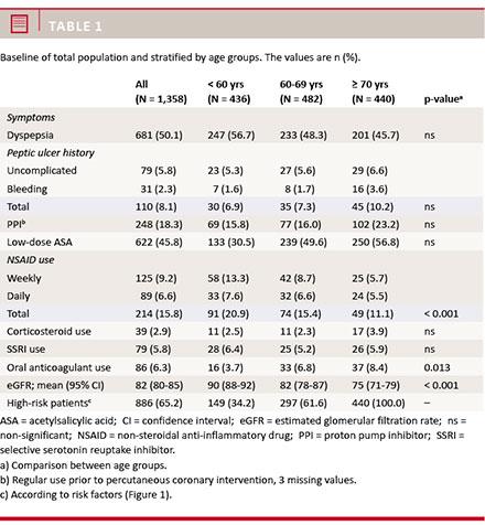 explanation could be the large proportion of patients treated with low-dose ASA prior to PCI, but it could also be due to selection bias as not all invited patients chose to participate. This leaves a possibility of a higher participation rate among patients with previous gastroentestinal problems. However, as baseline characteristics in this study were similar to those of national [16] and