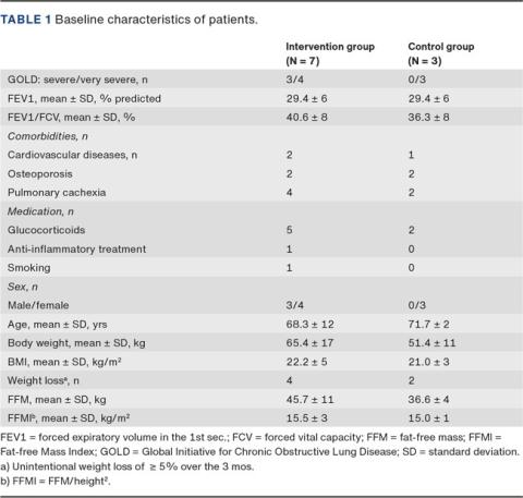 CONCLUSION. In patients with COPD attending rehabilitation, a high protein diet combined with physical exercise had a clinically relevant effect on walking distance.