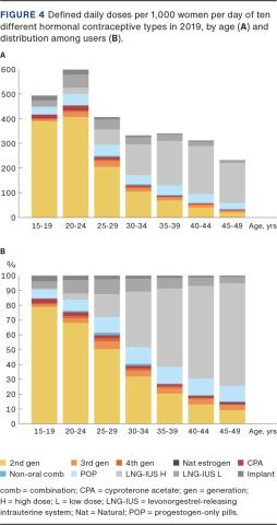 Results: The overall use of HC was stable in women from 15 to 25 years, decreased among women aged 25-34 years and increased among women aged 35 years or more. On average, an increase from 35% to 39% was recorded. Across all age groups, the use of second-generation combined oral contraceptives (COC) has almost completely replaced the use of third- and fourth-generation pills, and from the age of 20 years of age, the use of COC has decreased contrasting a steep increase in use of the hormone-intrauterine device (IUD). The magnitude of this shift increased with increasing age.