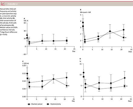 In order to elucidate the changes in the immune system in women undergoing extensive surgery, we analysed their immune system and compared changes with changes encountered in women undergoing abdominal hysterectomy due to benign disease.