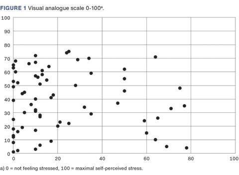 The response rate was higher for the first questionnaires (GAD-10) than for the last listed questionnaire (PHQ-9), which is a classic result in questionnaire studies due to respondent fatigue [20]. In contrast, the VAS score for self-perceived stress was well responded. This is also a classic finding in questionnaires. A high VAS score corresponded well to high scores on both the GAD-10- and the PHQ-9 scale.