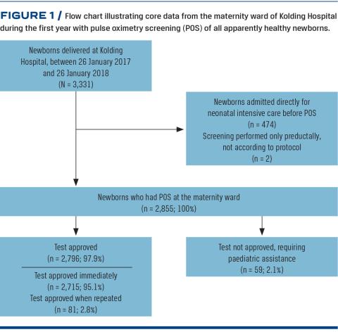 Until recently, maternity wards in Danish hospitals refrained from pulse oximetry screening (POS) of newborns as a method for detection of critical congenital heart disease (CCHD). One argument in support hereof was a high prenatal detection rate using ultrasound in the second trimester. However, the overall detection rate was reported to be only 71% in an evaluation of live-born major congenital heart disease in Denmark, with detection rates as low as 12%, depending on the specific anomaly [1].