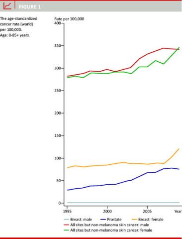 Engholm G, Ferlay J, Christensen N et al. NORDCAN – a Nordic tool for cancer information, planning, quality control and research. Acta Oncol 2010;49:725-36.