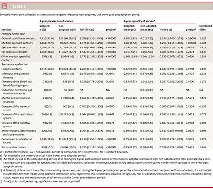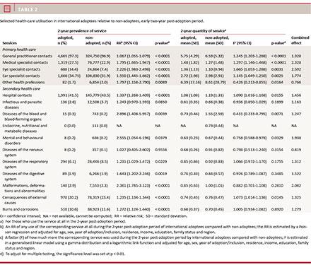 Table 2">Table 2 shows increased health-care use in both primary and secondary care among adopted children in the first two years after their arrival in Denmark.
