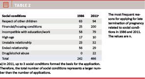 Material and methods: All applications for late termination of pregnancy in 1986 were reviewed by Nordentoft et al, and access to all applications from 2011 was granted by the abortion committees and the Appeals Board. All applications were reviewed in order to explore the development since 1986.