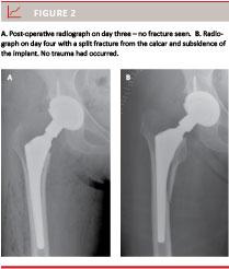 In the Hip Clinic in Hørsholm Hospital, Denmark, the number of early post-operative periprosthetic fractures has been growing as from 2006. The fractures could not be classified according to the Vancouver classification as either simple fractures of the greater or lesser trochanter, but are (SS) femoral split fractures reaching from the calcar to the medial femoral shaft 8-10 cm below the lesser trochanter. No trauma had been registered in any of these cases.