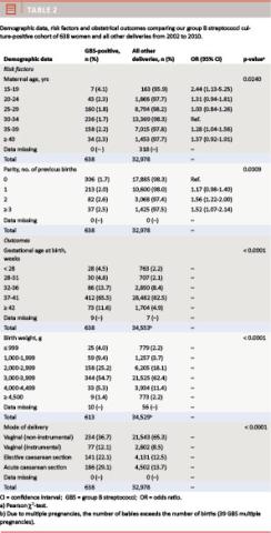 This study describes the incidence of mothers with a positive GBS culture during pregnancy who gave birth at RH, and it describes the association between the incidence and neonatal GBS morbidity and mortality in the 2002-2010 period.