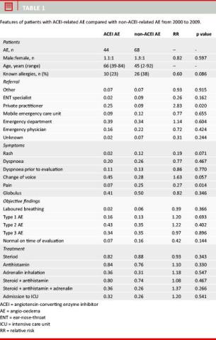 Conclusion: We found an increasing rate of ACEI-related upper airway AE over a ten-year period corresponding to greater use of ACEI in the population. With a relative risk of 7.7 and continuously increasing ACEI consumption, this condition will certainly require future attention and resources as almost one third of patients are admitted to an intensive care unit.
