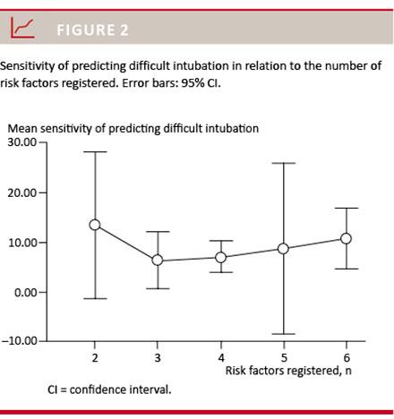 We found no linear correlation between the number of risk factors registered on the anaesthesia record and a better sensitivity of predicting difficult intubation (p = 0.41).
