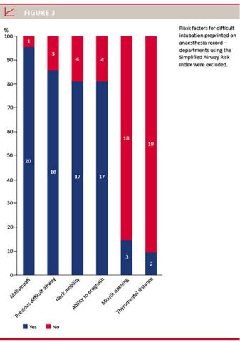 Methods: Heads of anaesthesia departments were sent a six-question survey at the beginning of 2012. We asked if systematic risk assessment tools, particularly the Simplified Airway Risk Index (SARI), and predictors for difficult intubation and mask ventilation were used. Additionally, we asked if any risk factors were pre-printed on the anaesthesia record.
