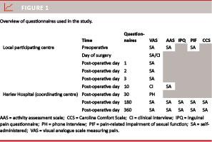 Both the primary and the secondary endpoints in this study are patient-centred and will be assessed using the following questionnaires: activity assessment scale (AAS) [8], pain-related impairment of function (PIF) [5], visual analogue scale (VAS) [9], Carolinas Comfort Scale (CCS) [10] and the inguinal pain questionnaire (IPQ) [11].