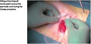 The preliminary post-operative results of the Onstep procedure are based on 693 patients operated in two surgical centres [6]. This single-arm observational study reported a complication rate of 1% at the one-year follow-up. Early complications were found among 0.7% of the patients, primarily in the form of seroma, haematoma and wound infection. At the six-month follow-up, four patients (0.6%) reported residual pain, and in three of these the non-absorbable deployment ring in the mesh was removed by a subsequent small surgical procedure. At the 12-month follow-up, the pain of the last patient had become negligible; thus, no patients had pain at the 12-month follow-up. The study also investigated recurrence and found five recurrences within the first two months (four in women), yielding a recurrence rate of 0.7%. So far, sexual function after the Onstep procedure has not been investigated.