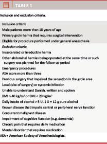 The proportion of patients in the two groups experiencing (new) pain during sexual activities will be compared using a χ2-test. Furthermore, the questionnaire regarding sexual dysfunction following inguinal hernia repair contains a list of subscales and questions which will also be compared using non-parametric statistics.